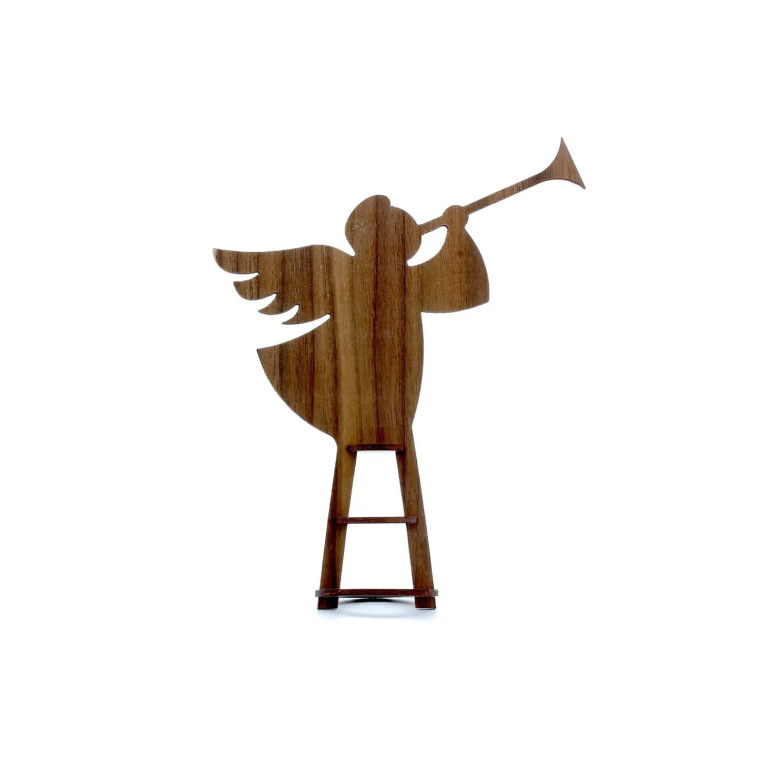 Die Christbaumspitze Engel mit Trompete ist die ideale Krönung für Ihren Weihnachtsbaum und verleiht Ihrer Festdekoration eine elegante Note. Gefertigt aus edlem Nussbaumholz, vereint diese Baumspitze traditionelle Handwerkskunst mit modernem Design.
