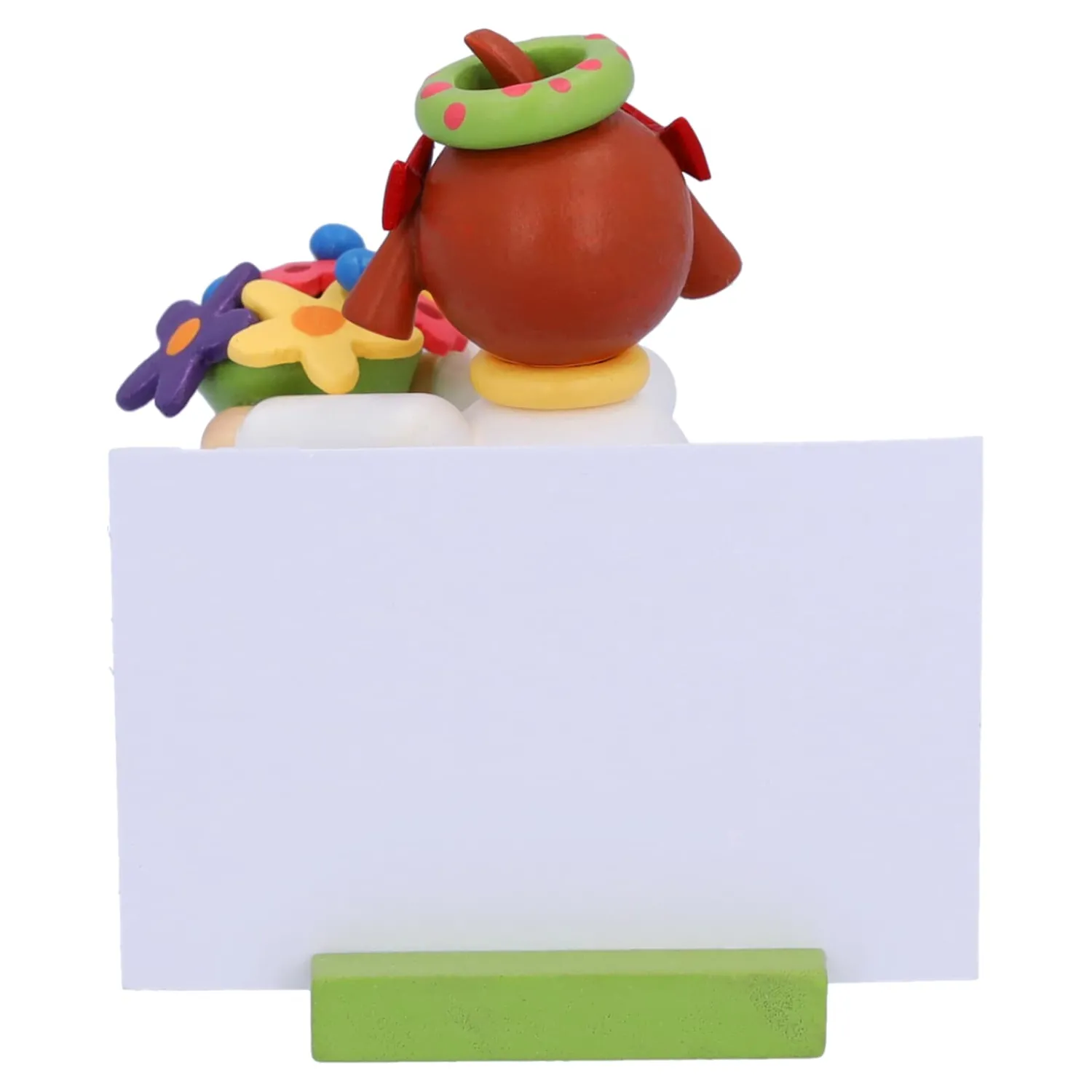Das putzige Mädchen im weißen Kleid und mit dem Blumenkranz hält einen schönen bunten Blumenstrauß in Händen. Auf dem Sockel können Sie Ihre persönliche Botschaft platzieren. Die passenden Zettel bringt das Blumenmädchen gleich mit.
