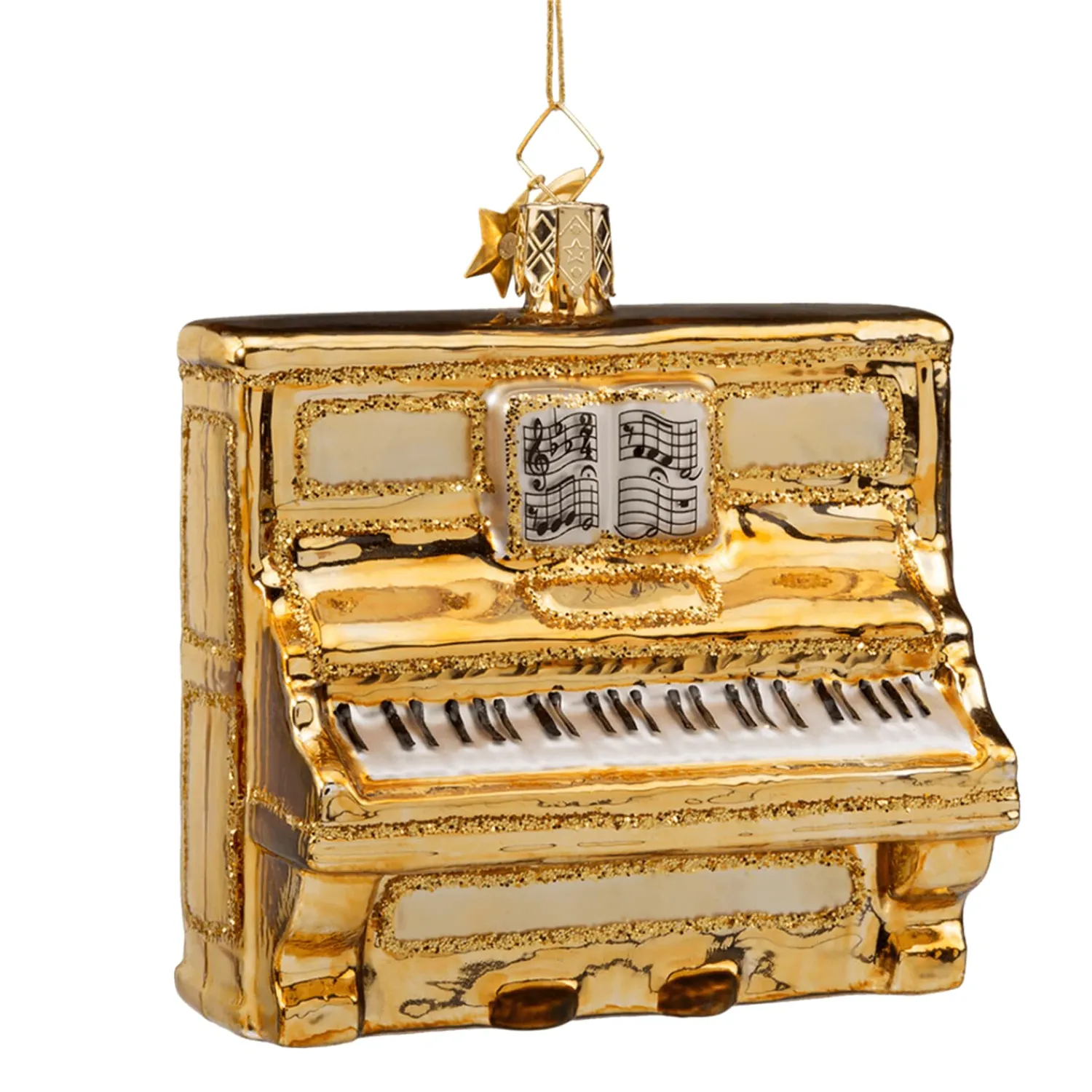 Der warme Goldton, glitzernde Akzente und liebevoll gemalte Details wie das aufgeschlagene Notenblatt machen dieses Klavier zum glänzenden Höhepunkt Ihrer Festtagsdekoration.