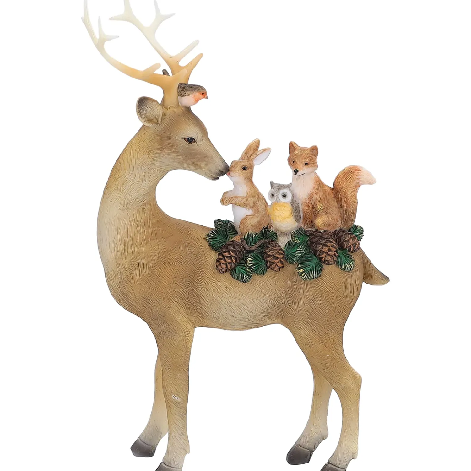 Ein wirklicher Hingucker ist dieser Hirsch mit seinen niedlichen Waldtieren.
