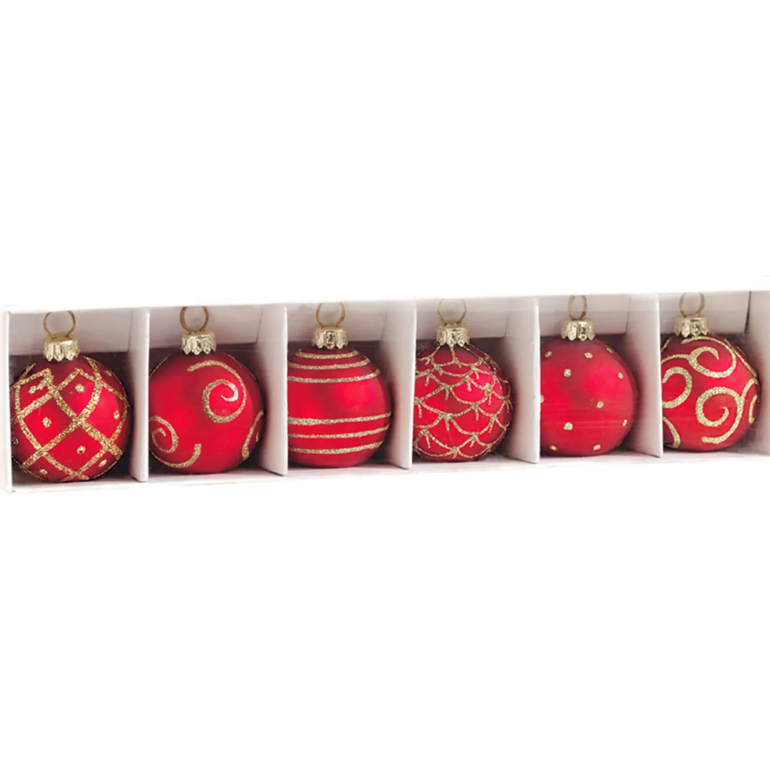 - Rote Kugeln mit verschiedenen goldenen Designs