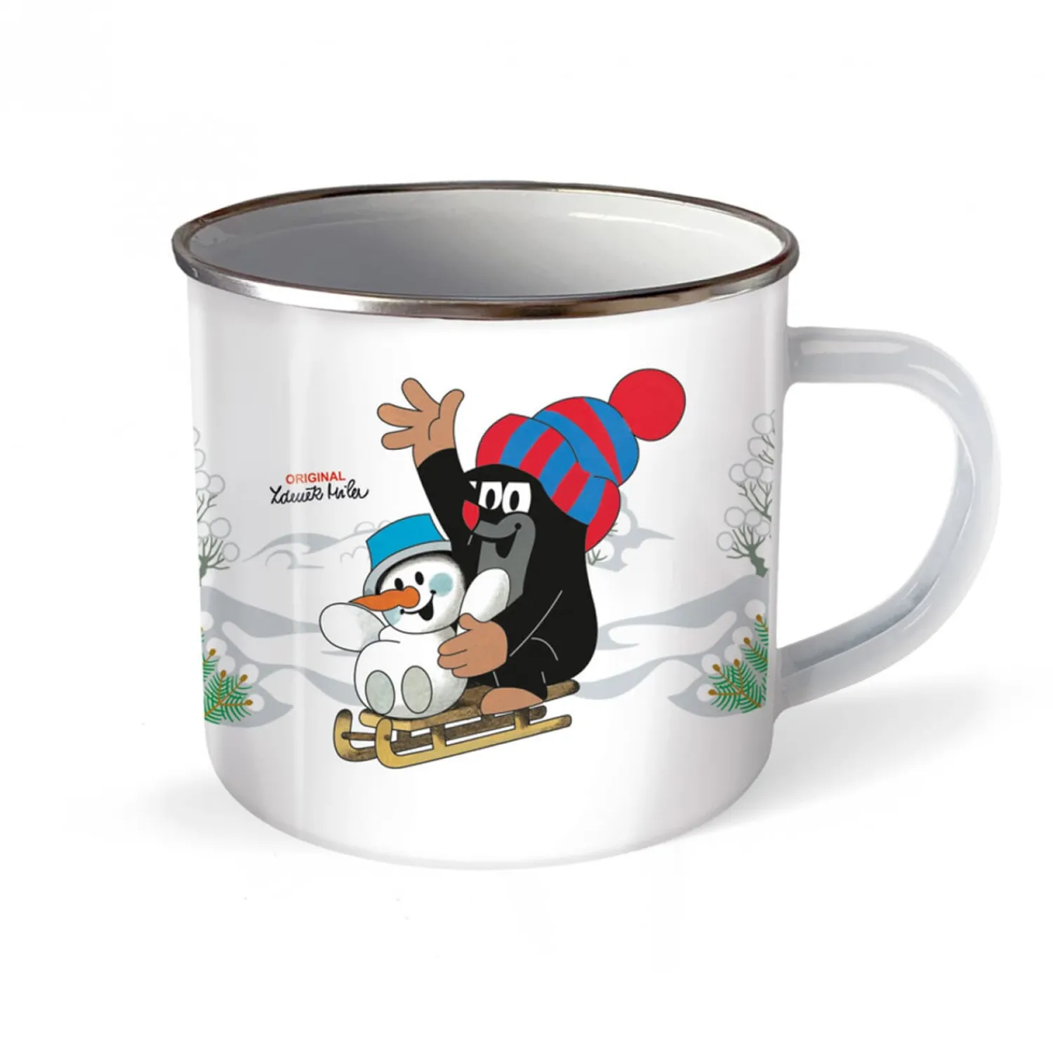 Die schön gestaltete Emailletasse mit dem Maulwurf versüßt jedes Kalt- oder Heißgetränk.