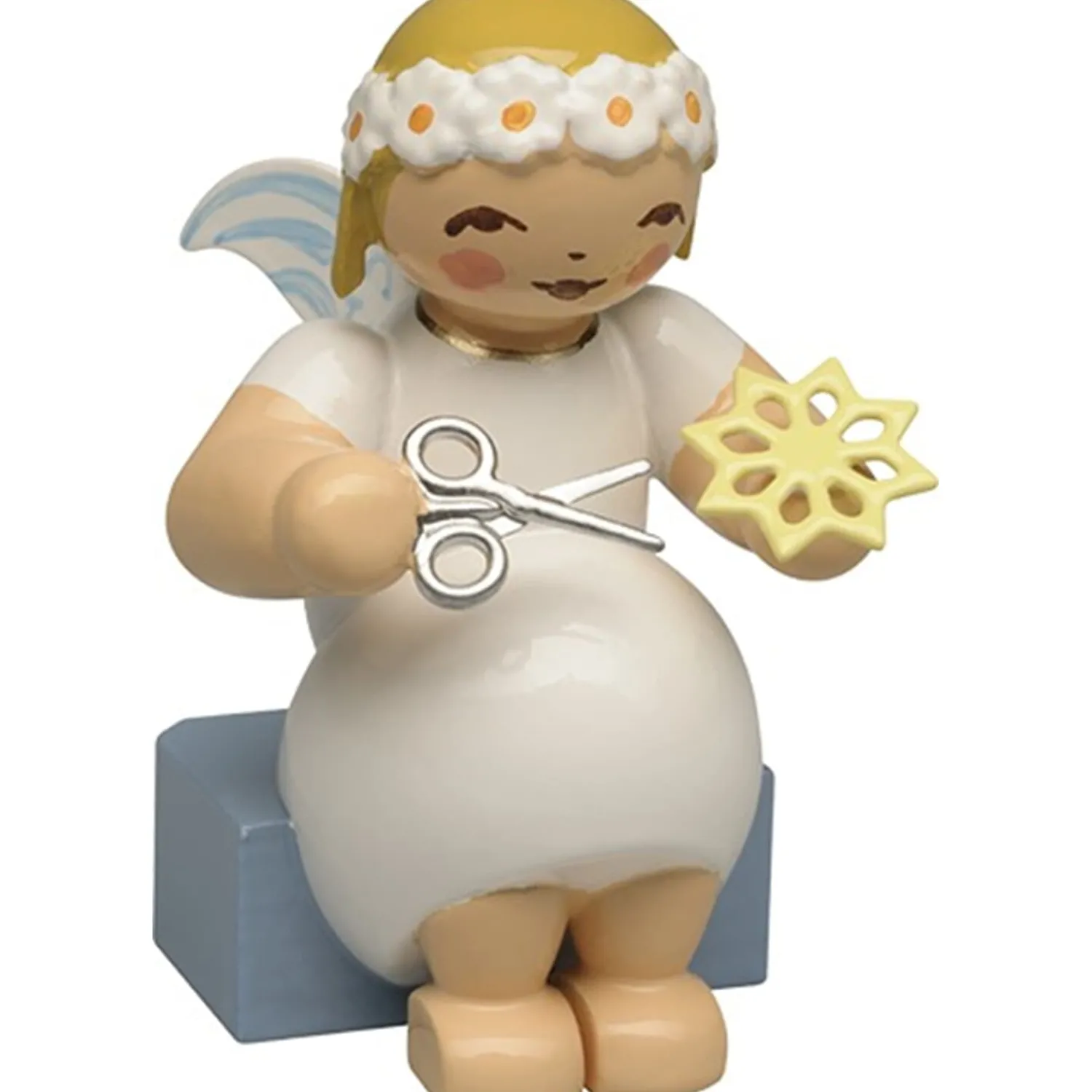 Die Margeritenengel haben einen wundervollen kindlichen Gesichtsausdruck, ein zarten Figurenkörper und haben einen Margeritenkranz auf ihrem blonden Haar. Die fleißigen Helferlein trifft man mal mit Instrumenten, Spielzeugen oder Leckereien aus der Backstube. Bis zum Weihnachtsfest gibt es immer viel zu tun.