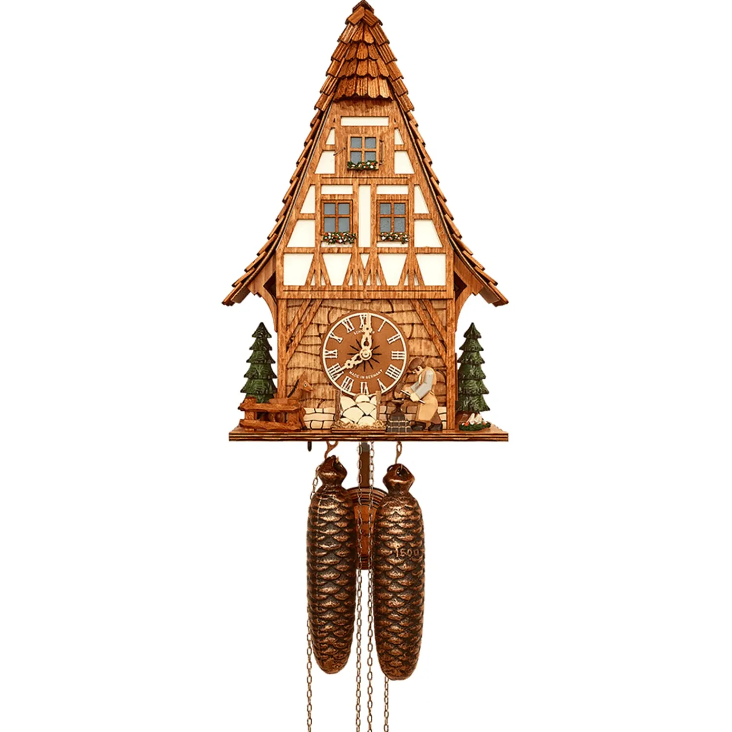 - Während des Kuckuck-Rufes zur halben und auch zur vollen Stunde bewegt der Schmied seinen Arm und beschlägt ein Eisen.