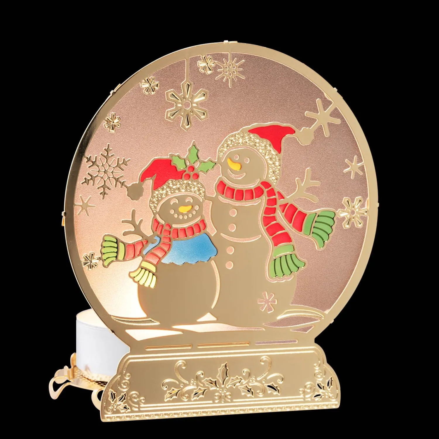 Dieser bezaubernde Teelichthalter mit Schneemann-Motiv bringt festliche Stimmung in Ihr Zuhause. Der Schein des Teelichts erleuchtet die fröhlichen Schneemänner und zaubert eine warme, gemütliche Atmosphäre. Ideal für die Adventszeit oder als liebevolle Ergänzung Ihrer weihnachtlichen Dekoration!