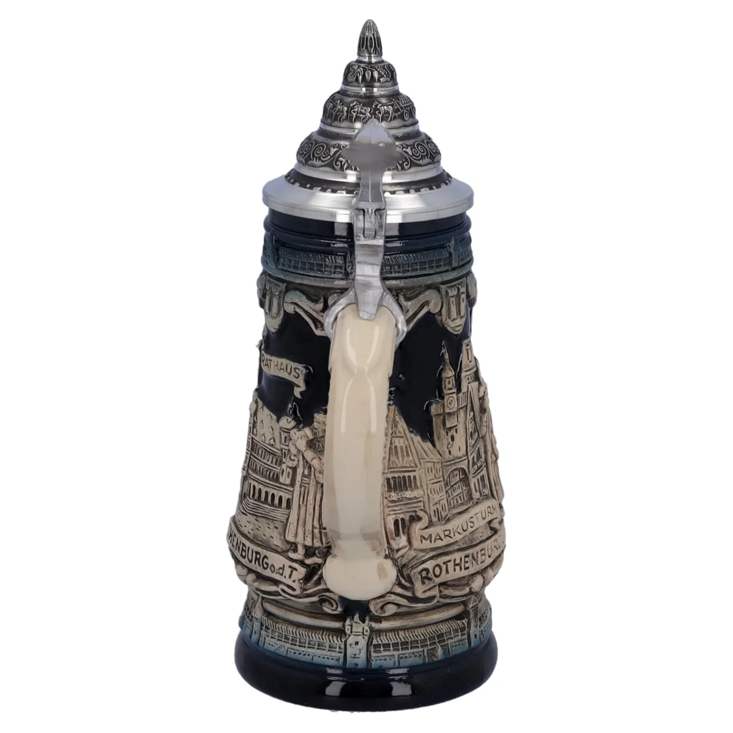 Bierkrüge|Rothenburg Motive-Bierkrug mit Zinndeckel "Rothenburg mit Ritter", 0,25l