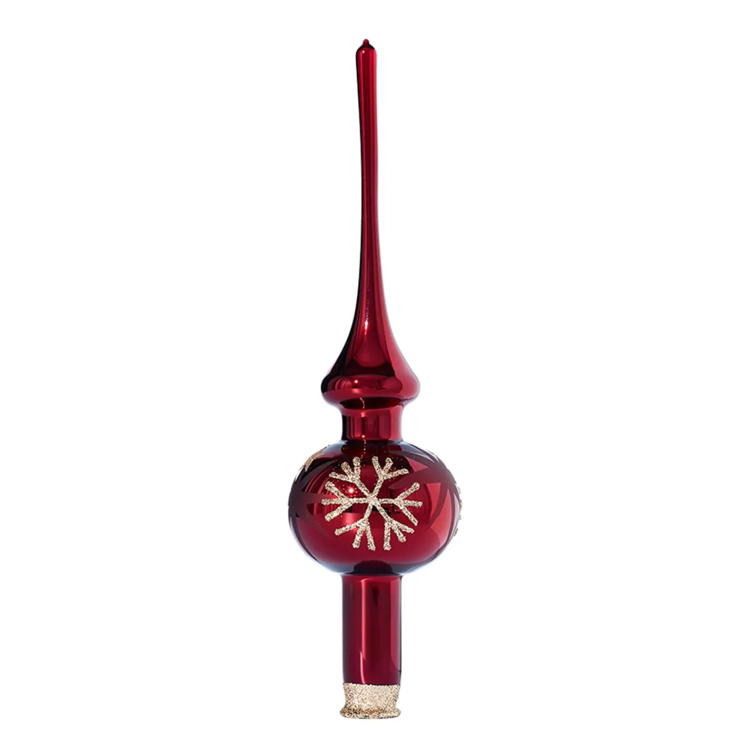 - Dekor: goldene Sterne und Flocken, mattrote Sterne