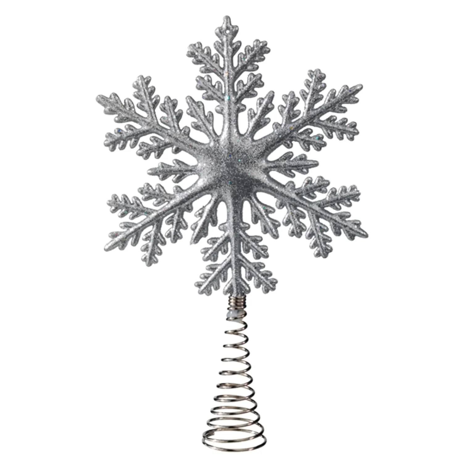 Christbaumspitzen|Baumschmuck Aus Kunststoff-Baumspitze Schneeflocke, silber