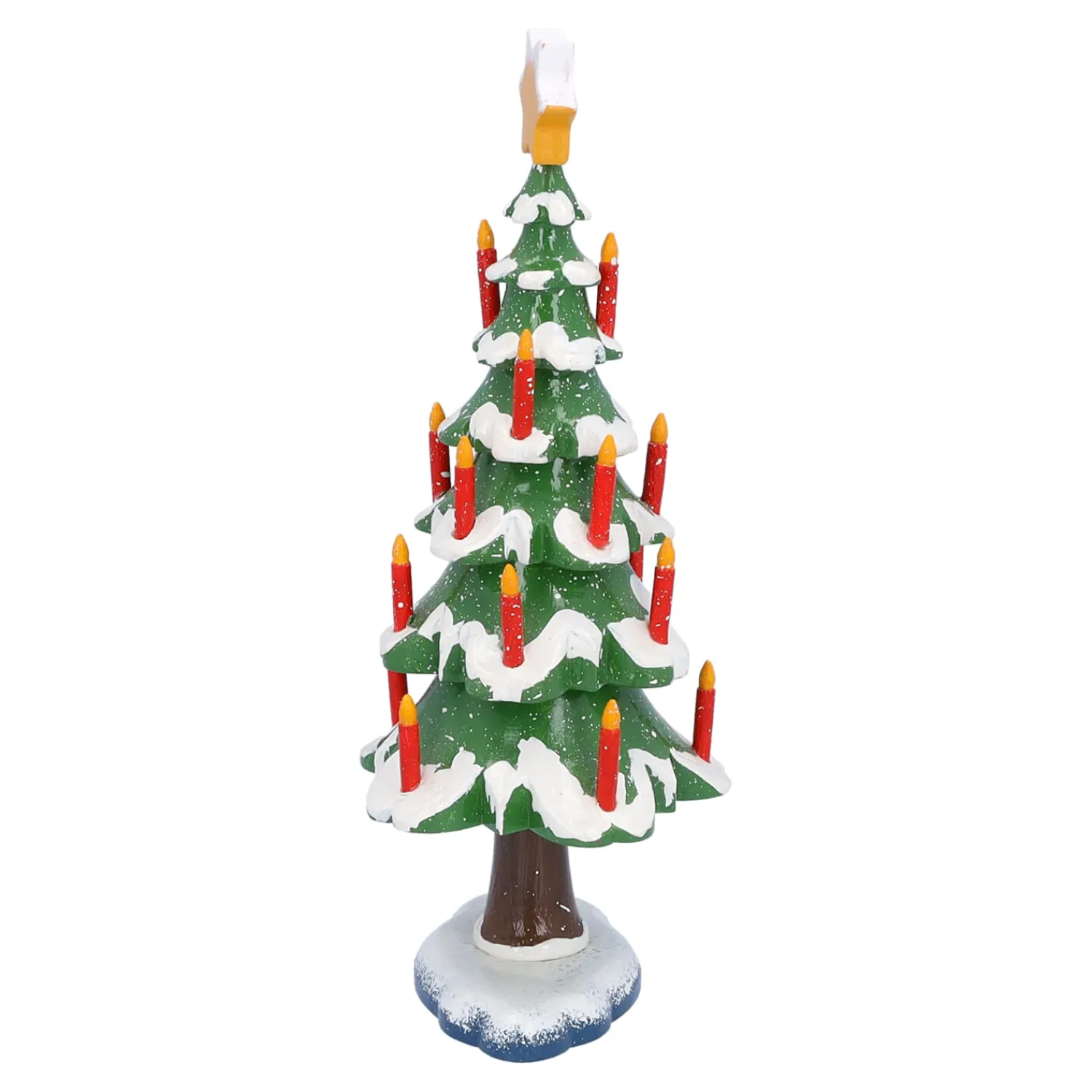 Der mit Schnee bedeckte Christbaum wird sich wundervoll in Ihr Winterdorf einfügen. Der große Baum erstrahlt mit vielen roten brennenden Kerzen und verleiht der Szenerie einen festlichen Glanz.