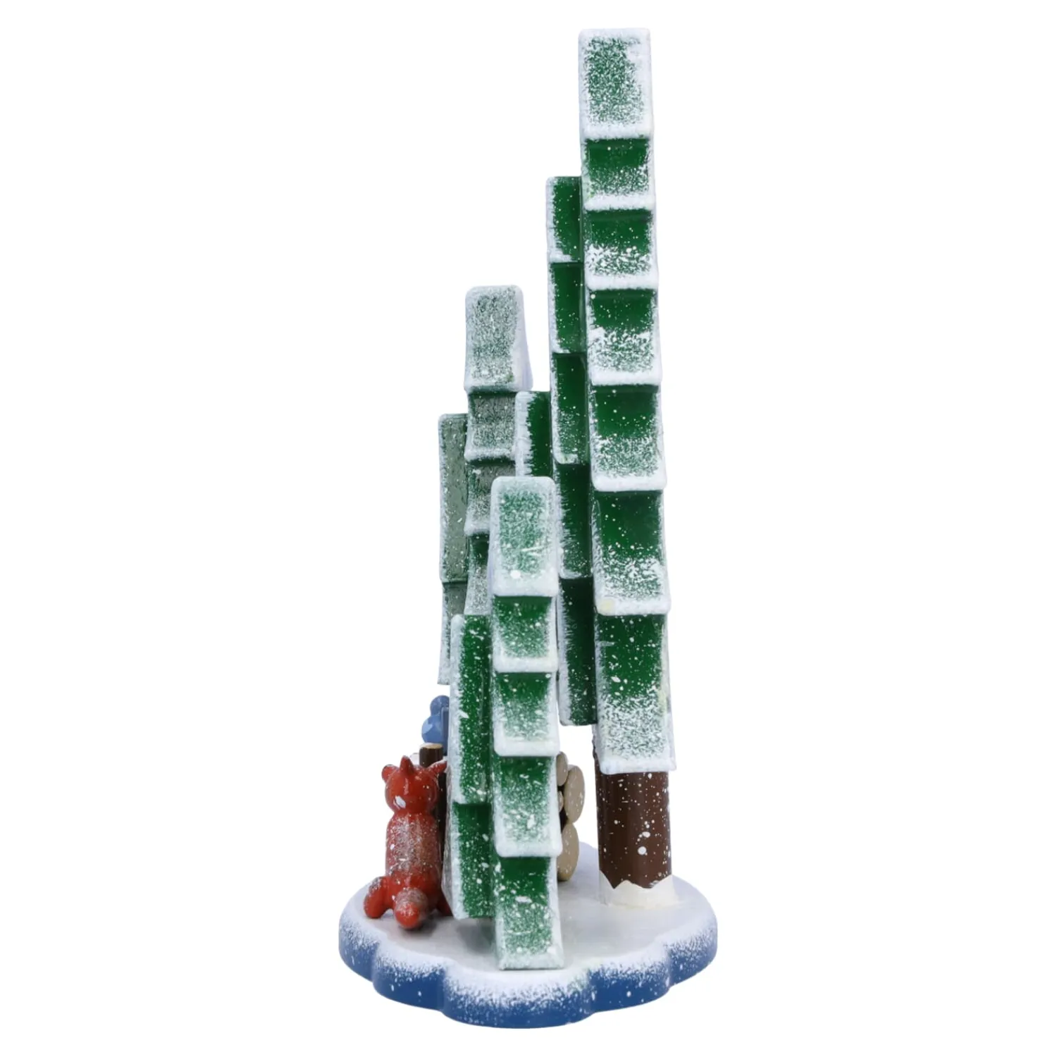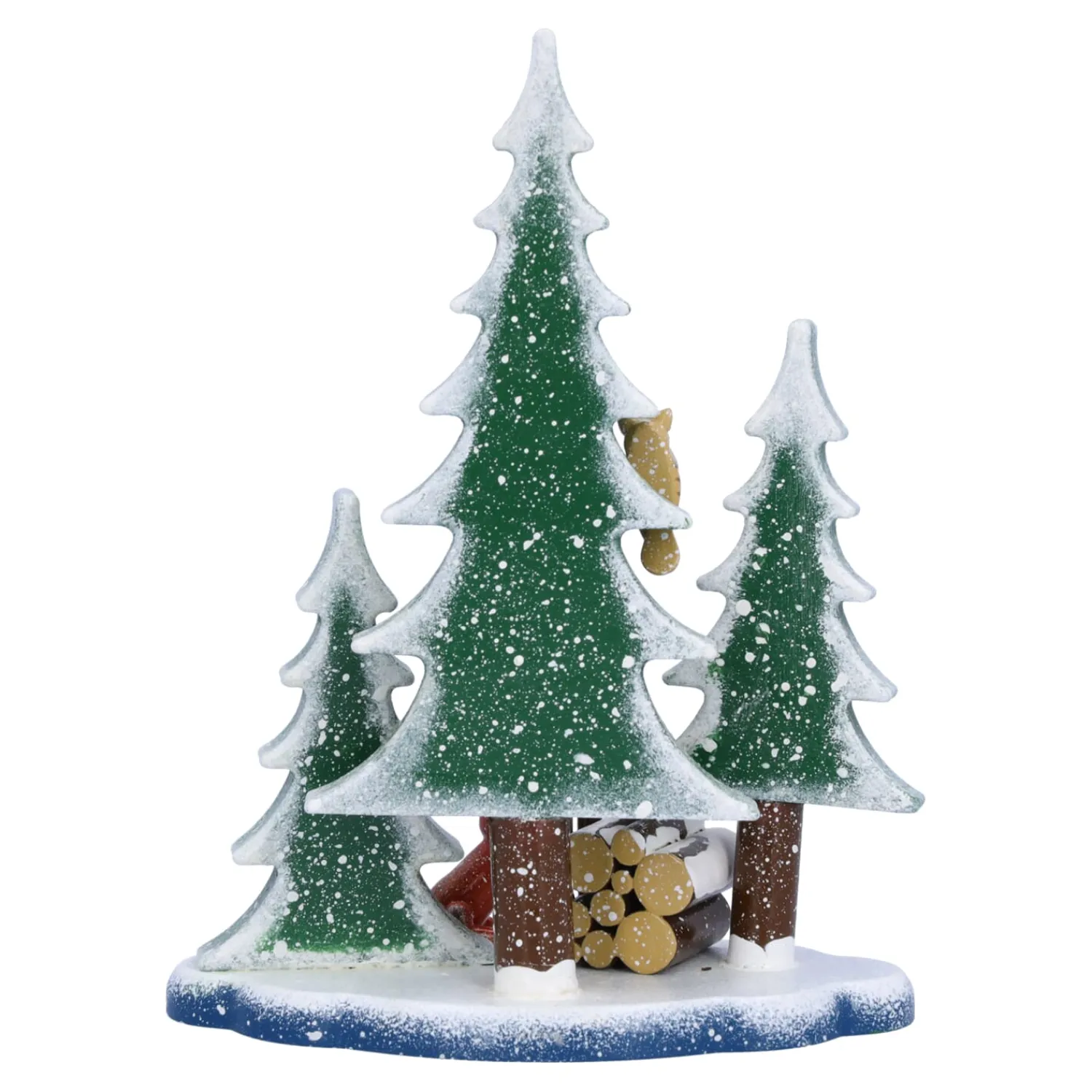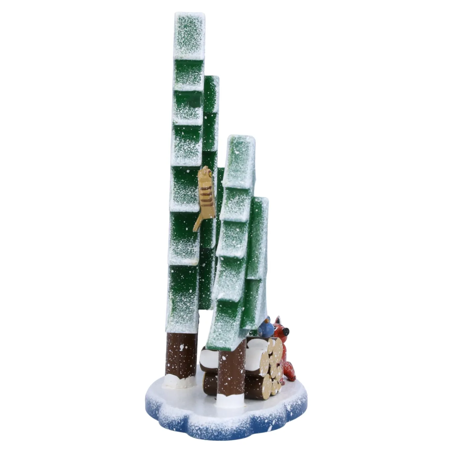 Die Tannenkulisse mit den Tieren im Winterwald wird Ihre Sammlung wundervoll ergänzen. Auf einer der schneebedeckten Tannen sitzt eine Waldeule, auf dem Holzstapel unter den Bäumen ein niedlicher Vogel und auch ein Fuchs ist zu sehen. Ob der wohl Hunger hat? Eine bezaubernde Szenerie in Ihrer Winterwelt!