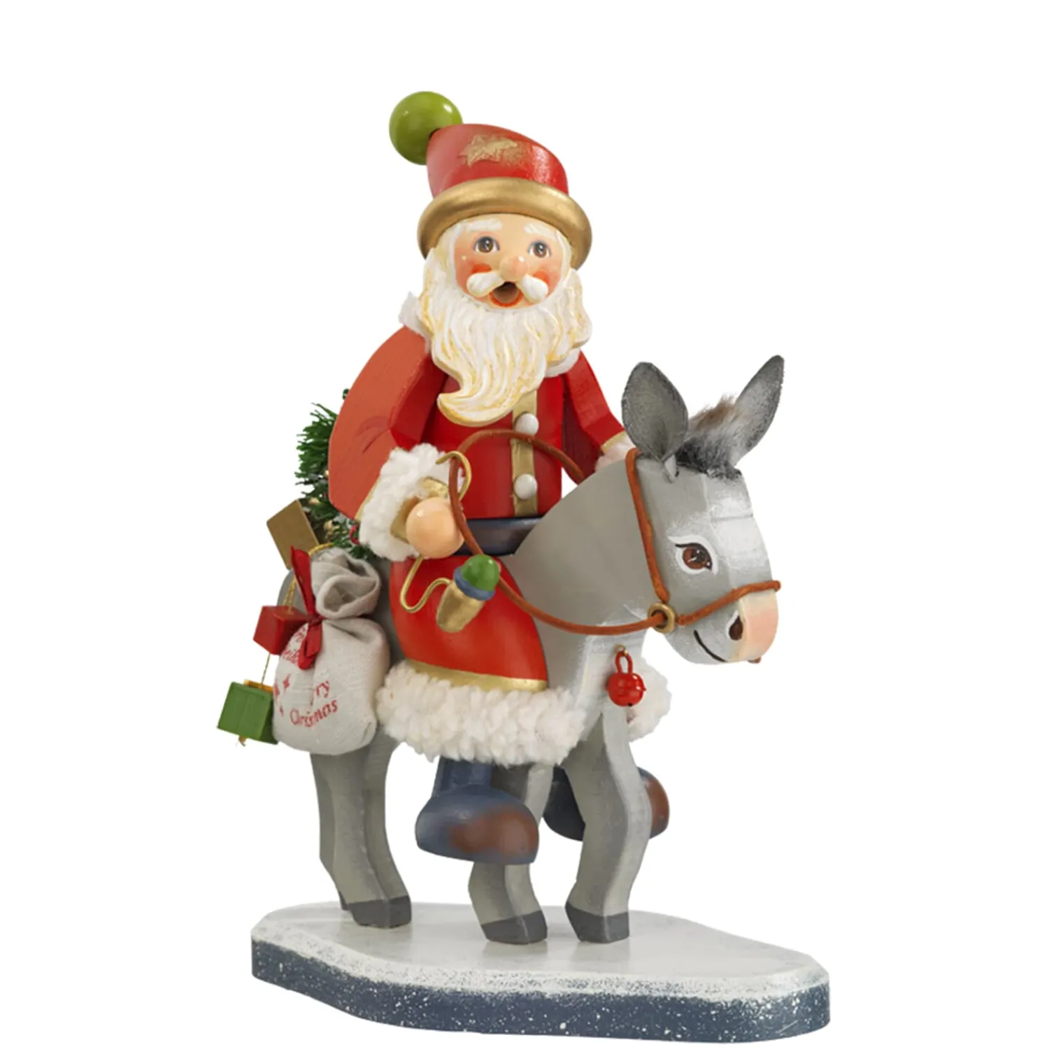 Endlich ist soweit und das Warten auf den Weihnachtsmann hat ein Ende. Am Weihnachtsabend besucht der Weihnachtsmann mit Rauschebart in seinem traditionellen roten Mantel jedes Haus. Bepackt mit vielen Geschenken stattet der freundliche Weihnachtsmann und sein Esel auch gerne Ihnen einen Besuch ab. Ganz gemächlich und ohne Hast sind der Gabenbringer und der graue Esel auf dem Weg die Geschenke zur Bescherung zu verteilen. Ein angenehmer, weihnachtlicher Duft begleitet die beiden auf ihrem Weg.
