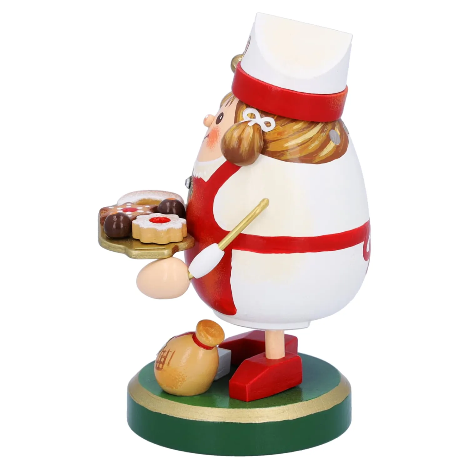 Mit rosigen Wangen und einem üppig beladenen Backblech bringt diese charmante Weihnachtsbäckerin in ihrer festlichen Schürze, die mit einem kleinen funkelnden Kristall geschmückt ist, eine Extraportion Weihnachtsfreude in Ihr Zuhause. Das Glöckchen an der Haube begleitet sie bei ihrer Arbeit. Durch die detailverliebte Bemalung wirkt die Weihnachtsbäckerin sehr lebendig und lässt die Vorfreude auf fröhliche Backtage aufkommen – an duftende Küchen, warme Stuben und Momente der Gemeinsamkeit. Die Weihnachtsbäckerin ist als Jahresduftl 2023 auf weltweit nur 10.000 Stück limitiert – ein echtes Sammlerstück für Liebhaber traditioneller Holzkunst in einer modernen Interpretation.