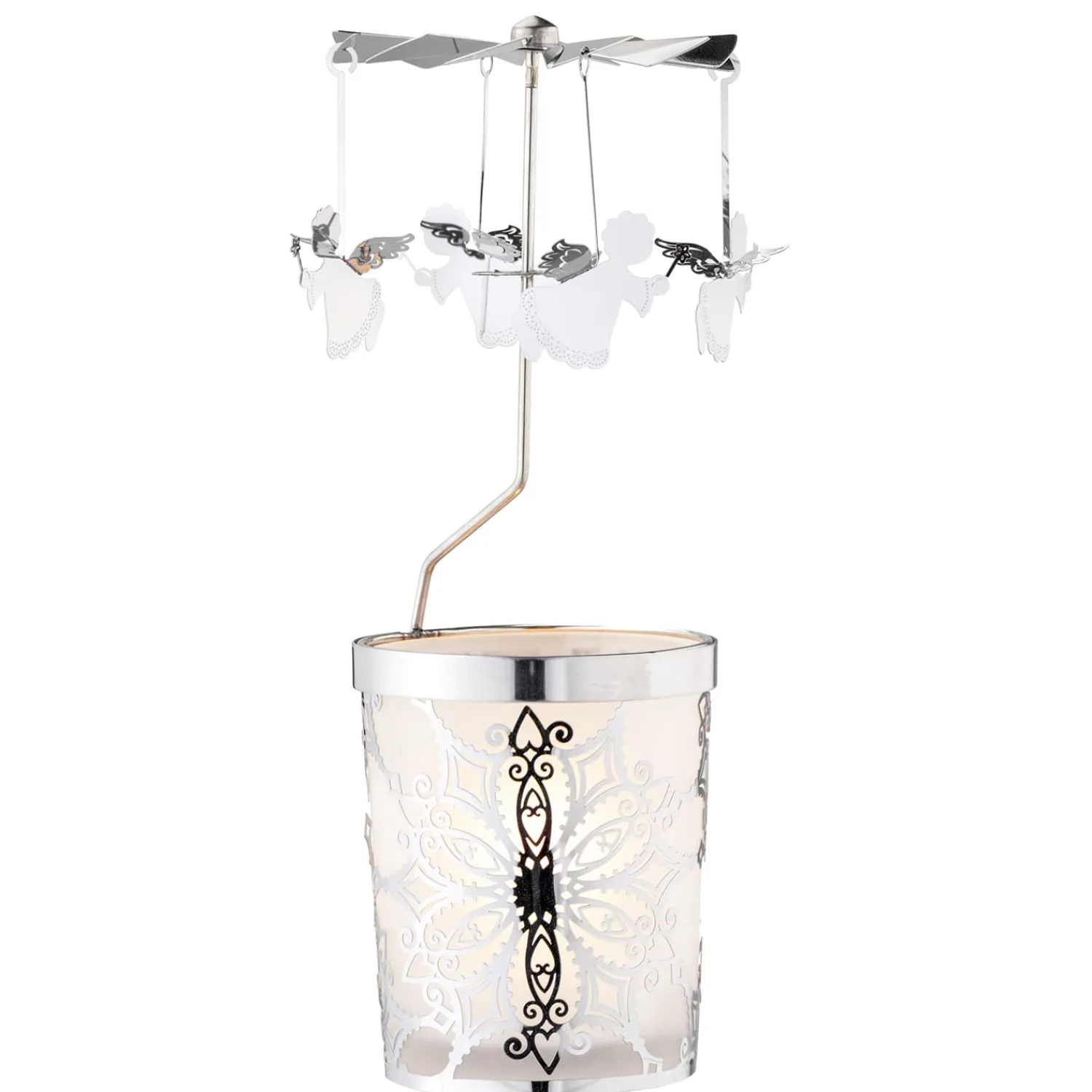 Sobald das Teelicht entzündet ist, schweben die Engel durch die winterliche Nacht, während der Kerzenschein ein behagliches Licht verströmt.