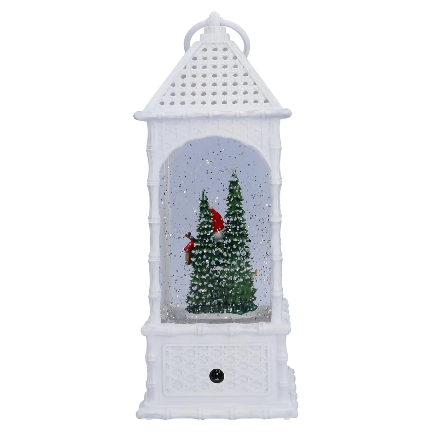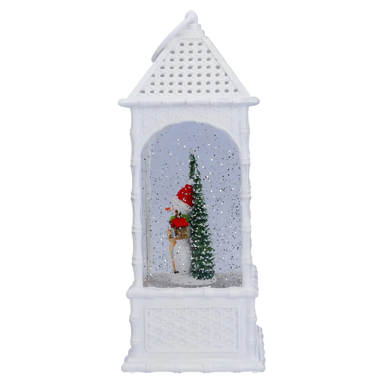 Diese wassergefüllte LED-Laterne aus Kunststoff und Plexiglas mit automatischem Schneegestöber schafft eine zauberhafte Winterwelt. Der fröhliche Schneemann inmitten der funkelnden Schneeflocken wird von einem kleinen Reh begleitet. Ein wundervolles Highlight für Ihre Weihnachtsdekoration, das stimmungsvolles Licht und winterliche Magie in Ihr Zuhause bringt.