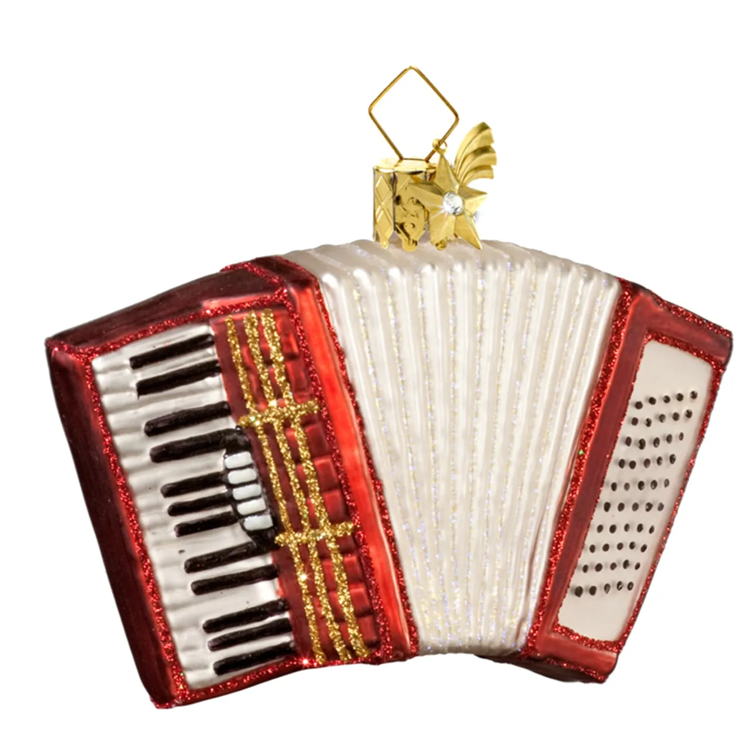 Mal sanft und verträumt, mal kraftvoll und voller Lebensfreude – das Akkordeon verleiht der Musik einen unverwechselbaren Klang. Dieses liebevoll gestaltete Glas-Ornament erinnert an gesellige Weihnachtsabende, an denen Musik Geschichten erzählt und Herzen berührt.