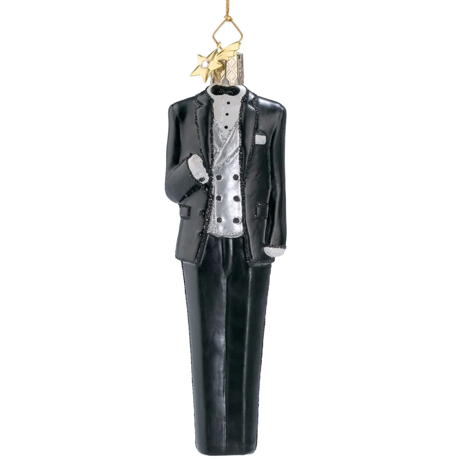 Es ist einer der schönsten Tage im Leben: Der Hochzeitstag. Der Tag an dem man sich gegenseitig das Jawort gibt soll daher in bester Erinnerung bleiben. Am besten das ganze Jahr über. Warum also nicht auch an Weihnachten als Schmuck am Christbaum? Das schwarze Anzug mit weißem Hemd und Fliege gibt eine gute Figur am Baum ab und ergänzt sich hervorragend mit den festlichen Glaskugeln.