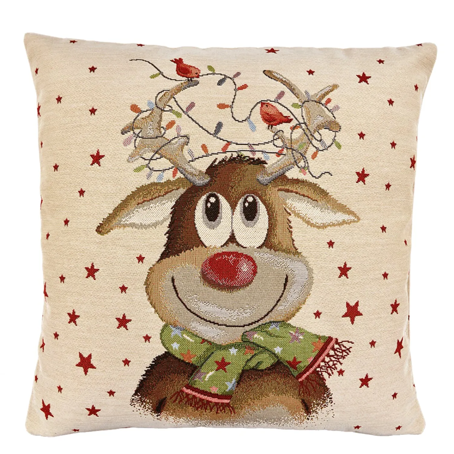 Sandner Wohndeko-Kissenhülle „Lustiges Rentier mit Lichterkette“