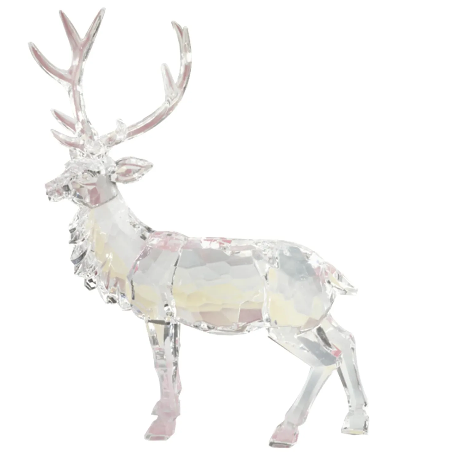 Mit stolzer Haltung verkörpert dieser stehende Hirsch aus edlem Acryl eine anmutige Eleganz, die sofort ins Auge fällt. Die facettierte Oberfläche lässt das Licht in winterlicher Klarheit tanzen und macht ihn zu einem funkelnden Highlight jeder festlichen Dekoration.