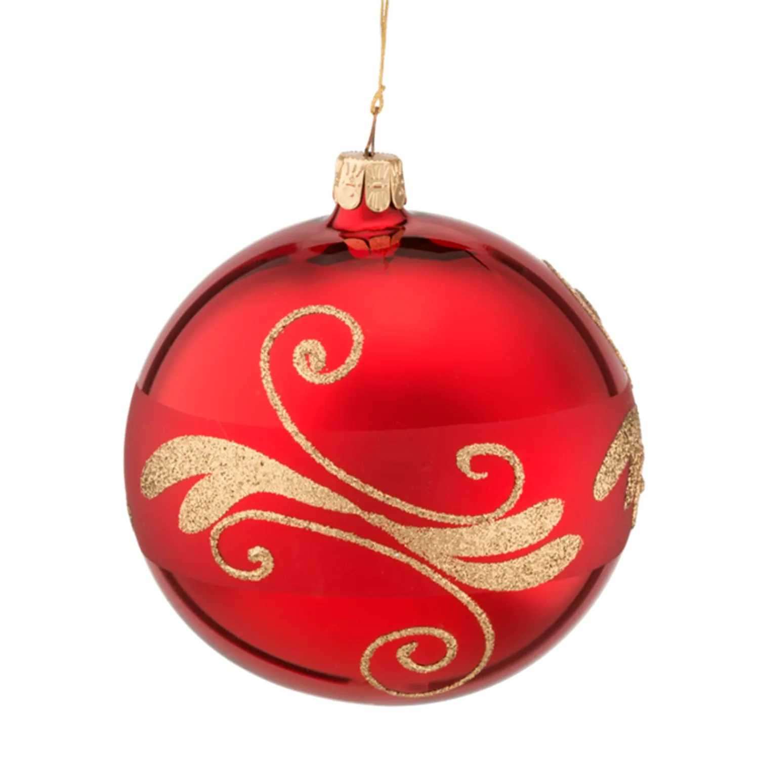 Weihnachtskugeln|Weihnachtskugeln Aus Glas-Glaskugel rot mit goldfarbener Verzierung, 10 cm