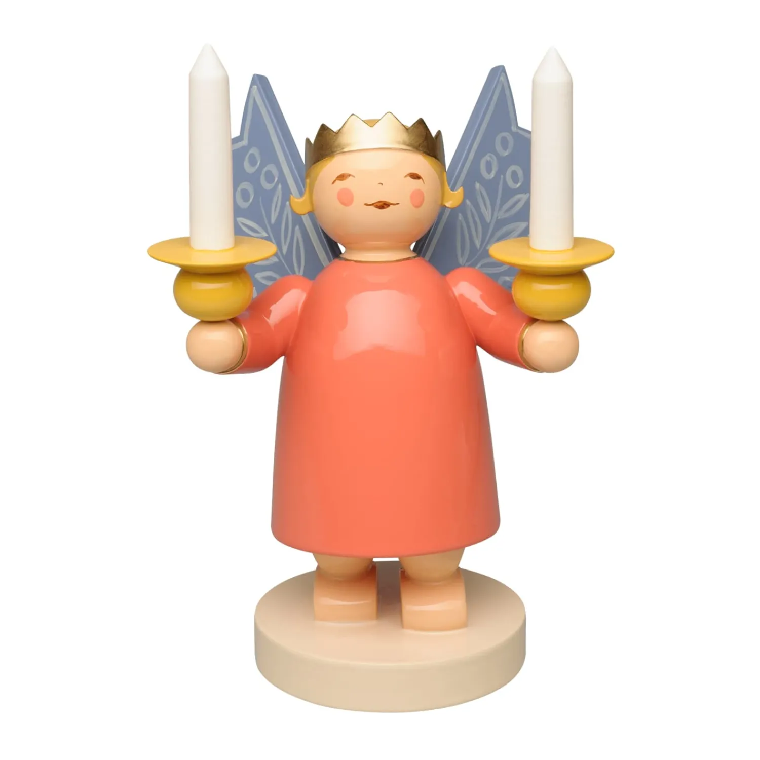 Blaue Flügel, knielanges Kleid, blonder Schopf – so präsentieren sich die himmlischen Kronenengel. Ihren Namen verdanken Sie der goldfarbenen Krone, die ihren Kopf schmückt. Olly Wendt (geb. Sommer), kreative Gestalterin an Grete Wendts Seite, entwarf diese anmutige und zugleich kindlich-fröhliche Figurengruppe bereits vor 1937. Nach fast 80 Jahren kehren die Kronenengel ins Sortiment zurück.