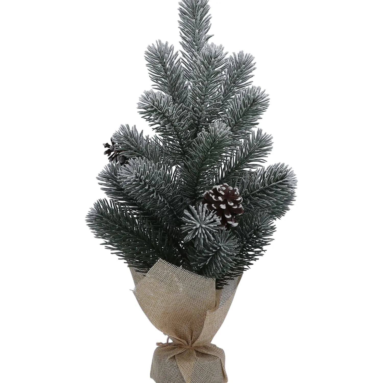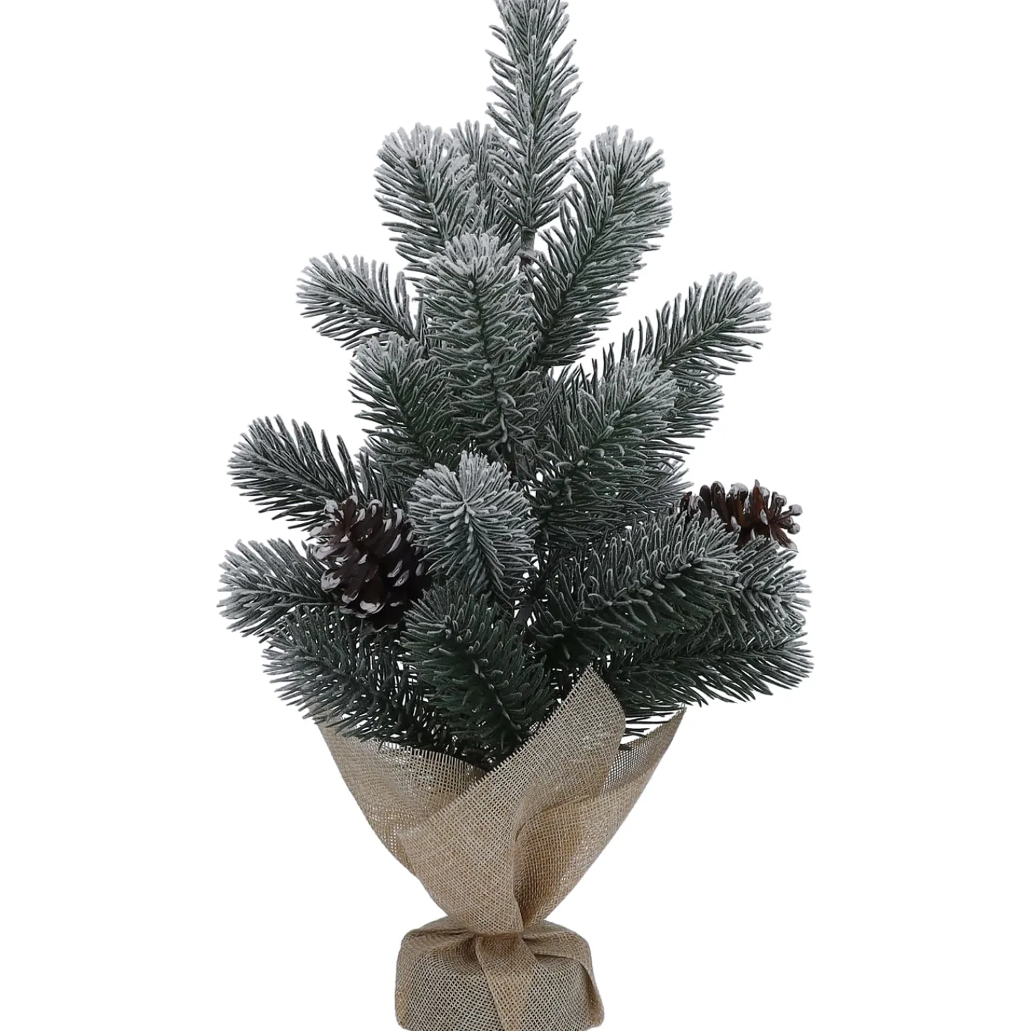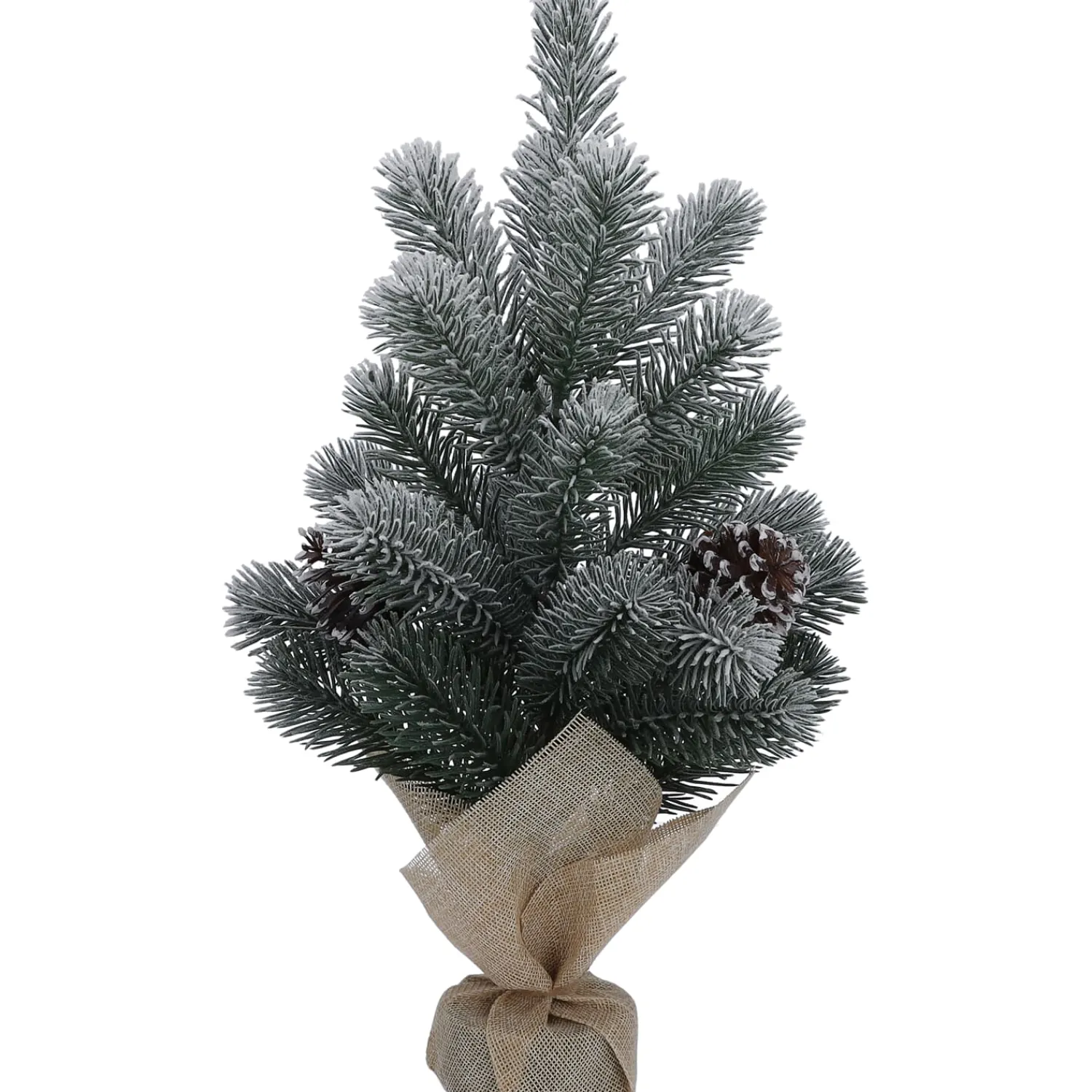 Bringen Sie festliche Winterstimmung in Ihr Zuhause mit diesem dekorativen Mini-Weihnachtsbaum aus Kunststoff. Die naturgetreuen, schneebedeckten Tannenzweige und die detailreichen, frostigen Zapfen sorgen für ein stimmungsvolles Ambiente – ganz ohne Pflegeaufwand. Der stabile Jutesack als Fuß verleiht dem Baum eine rustikale, natürliche Note und macht Ihn zu einem charmanten Blickfang auf Fensterbank, Sideboard oder als Tischdeko.