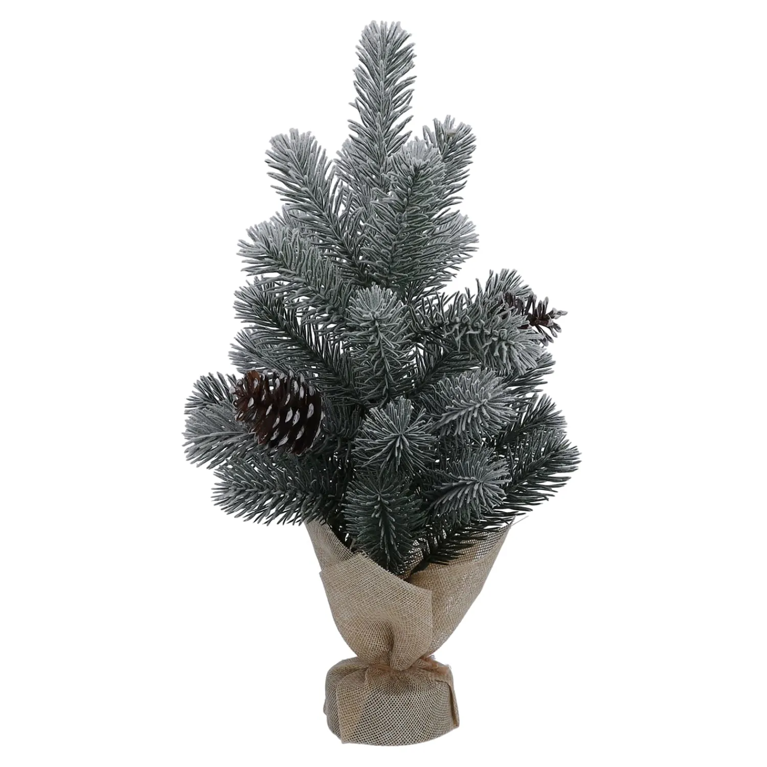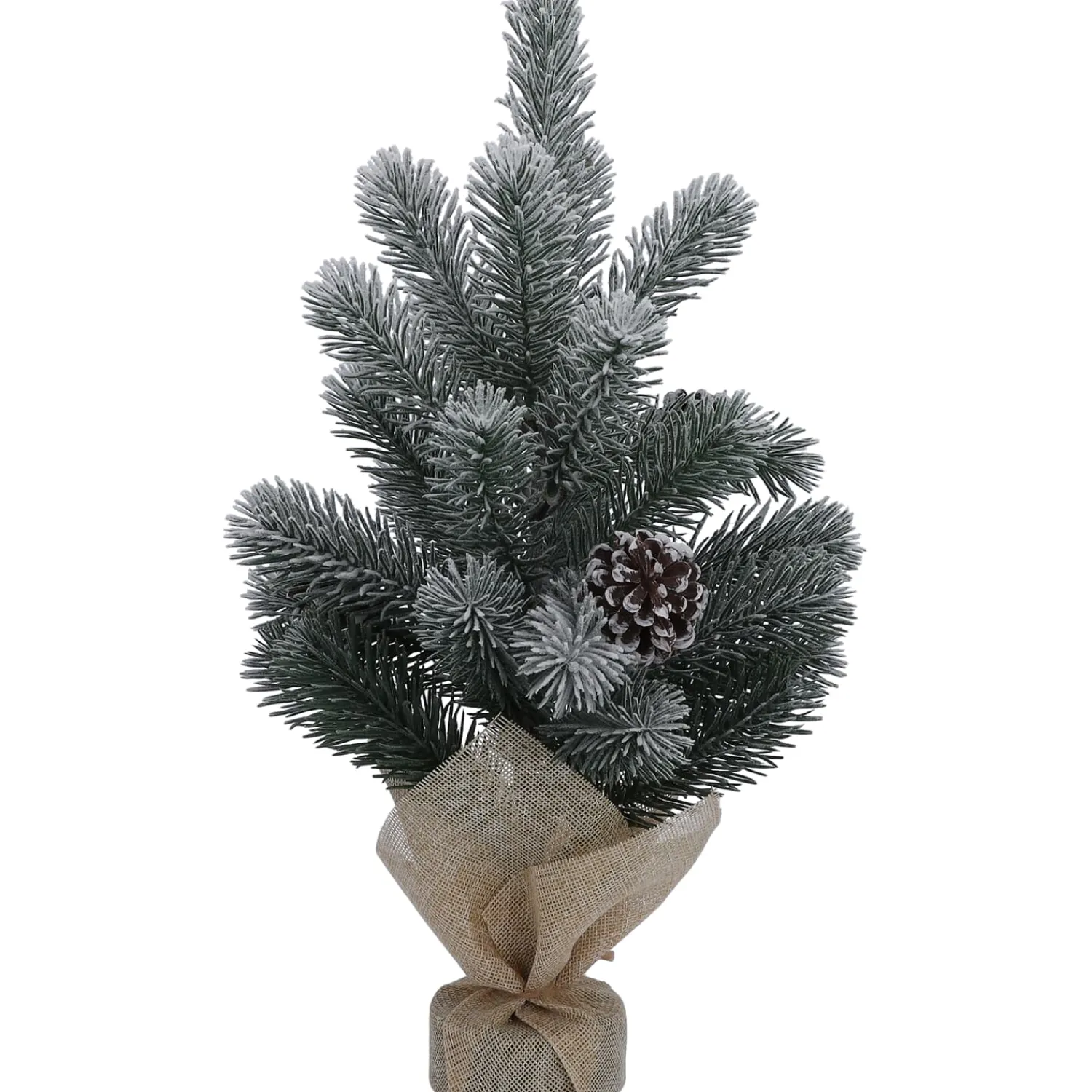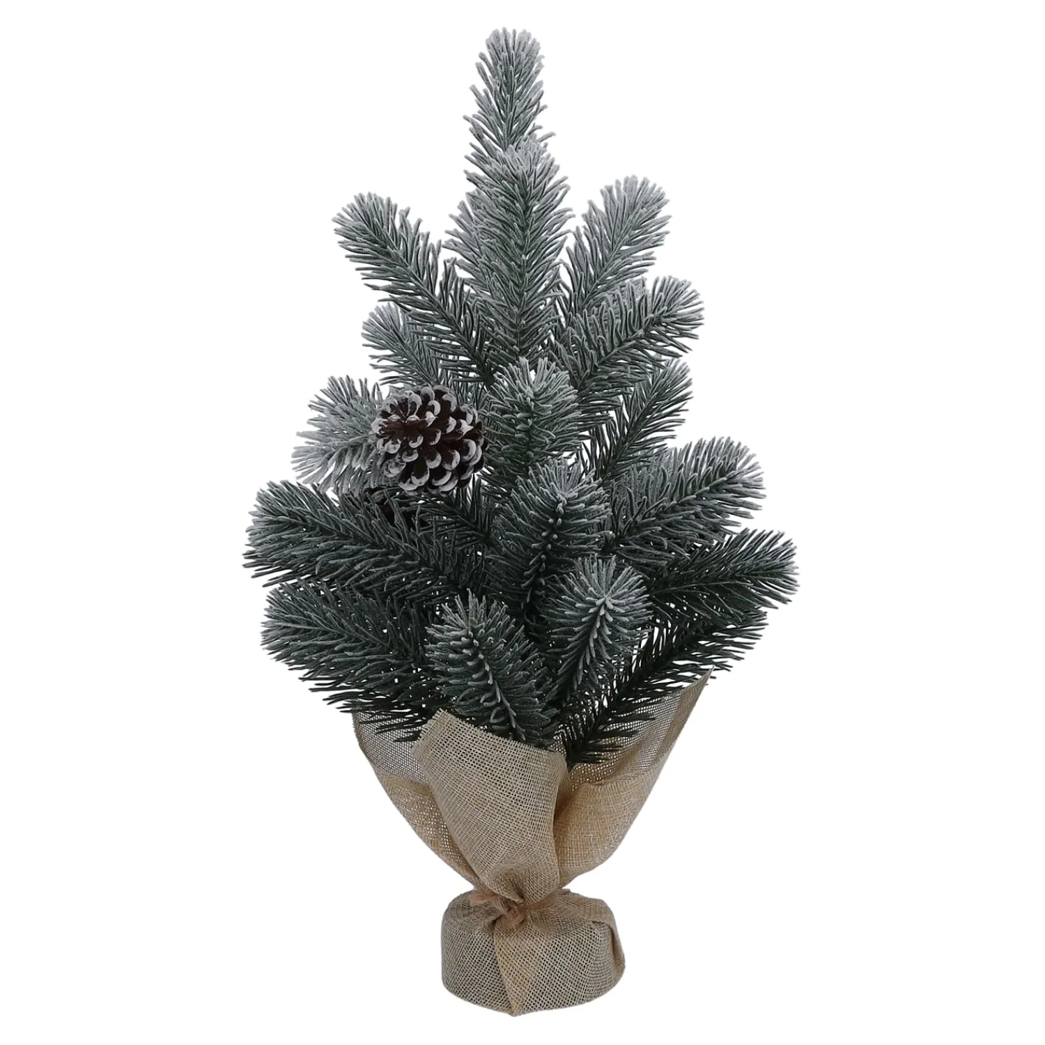 Bringen Sie festliche Winterstimmung in Ihr Zuhause mit diesem dekorativen Mini-Weihnachtsbaum aus Kunststoff. Die naturgetreuen, schneebedeckten Tannenzweige und die detailreichen, frostigen Zapfen sorgen für ein stimmungsvolles Ambiente – ganz ohne Pflegeaufwand. Der stabile Jutesack als Fuß verleiht dem Baum eine rustikale, natürliche Note und macht Ihn zu einem charmanten Blickfang auf Fensterbank, Sideboard oder als Tischdeko.