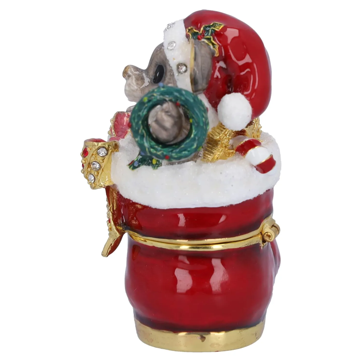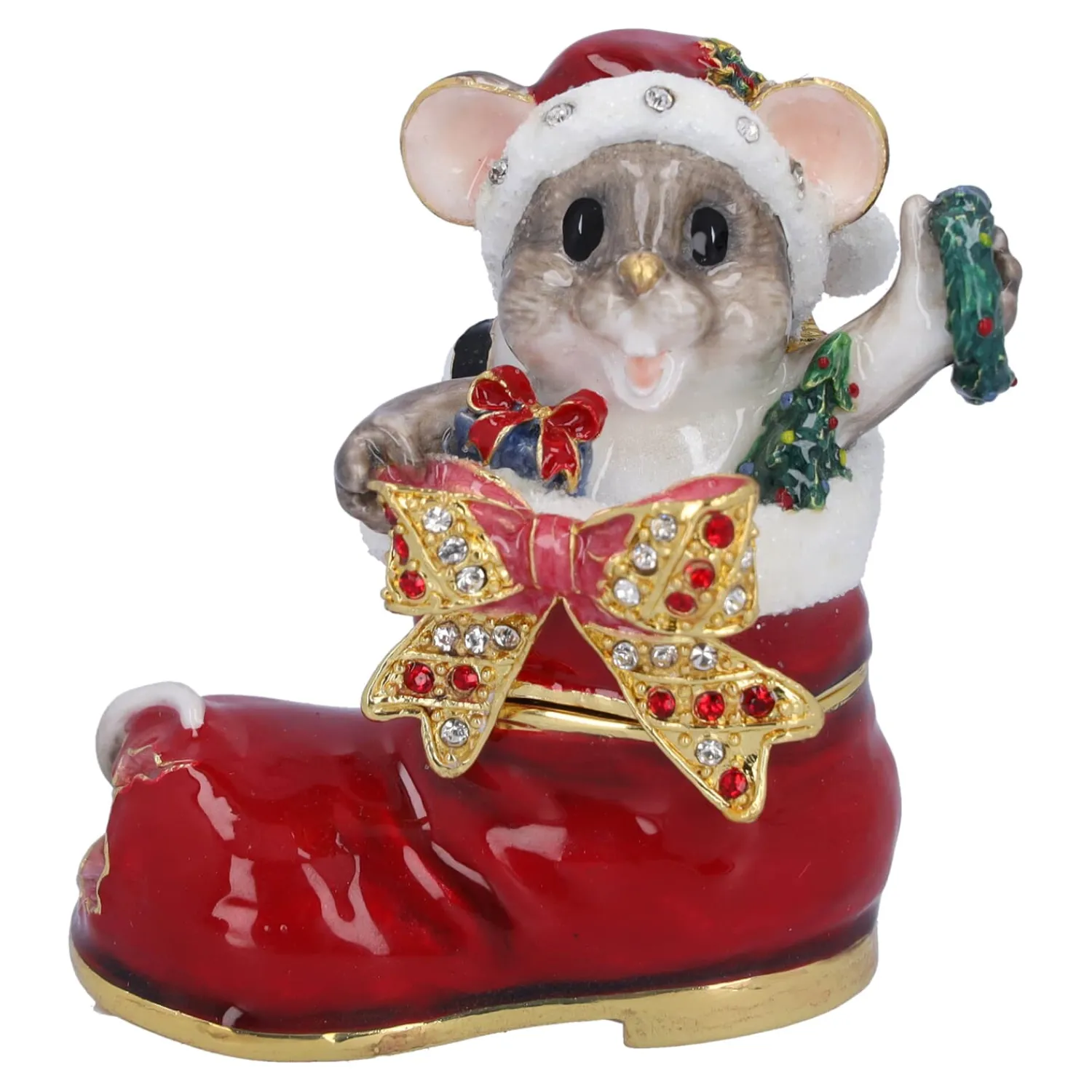 Wer hat sich denn da in den Stiefel geschlichen? Diese bezaubernde Maus, die neugierig aus dem festlich verzierten Weihnachtsstiefel lugt, bringt Freude und Schmunzeln in jedes Zuhause! Mit ihrer charmanten Weihnachtsmütze, einem kleinen Kranz in der Hand ist sie nicht nur ein witziger Hingucker, sondern auch eine praktische kleine Schatulle für Ihre weihnachtlichen Schätze. Perfekt als Geschenk oder liebevolle Deko – sie sorgt garantiert für festliche Stimmung!